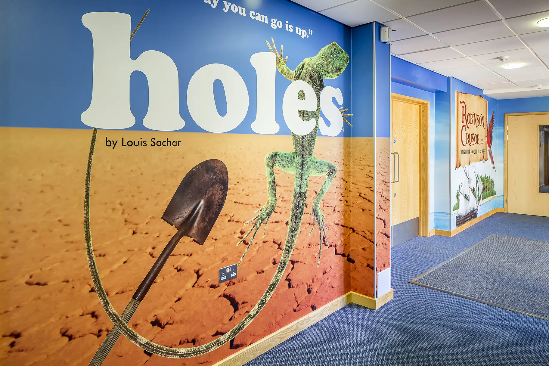 Literature Wall Art for Schools can inspire students to engage with the setbooks in their curriculum. And Lee Chapel Primary School wanted to achieve this within their school. They were also keen to celebrate some of the classic children’s stories that have stood the test of time.
