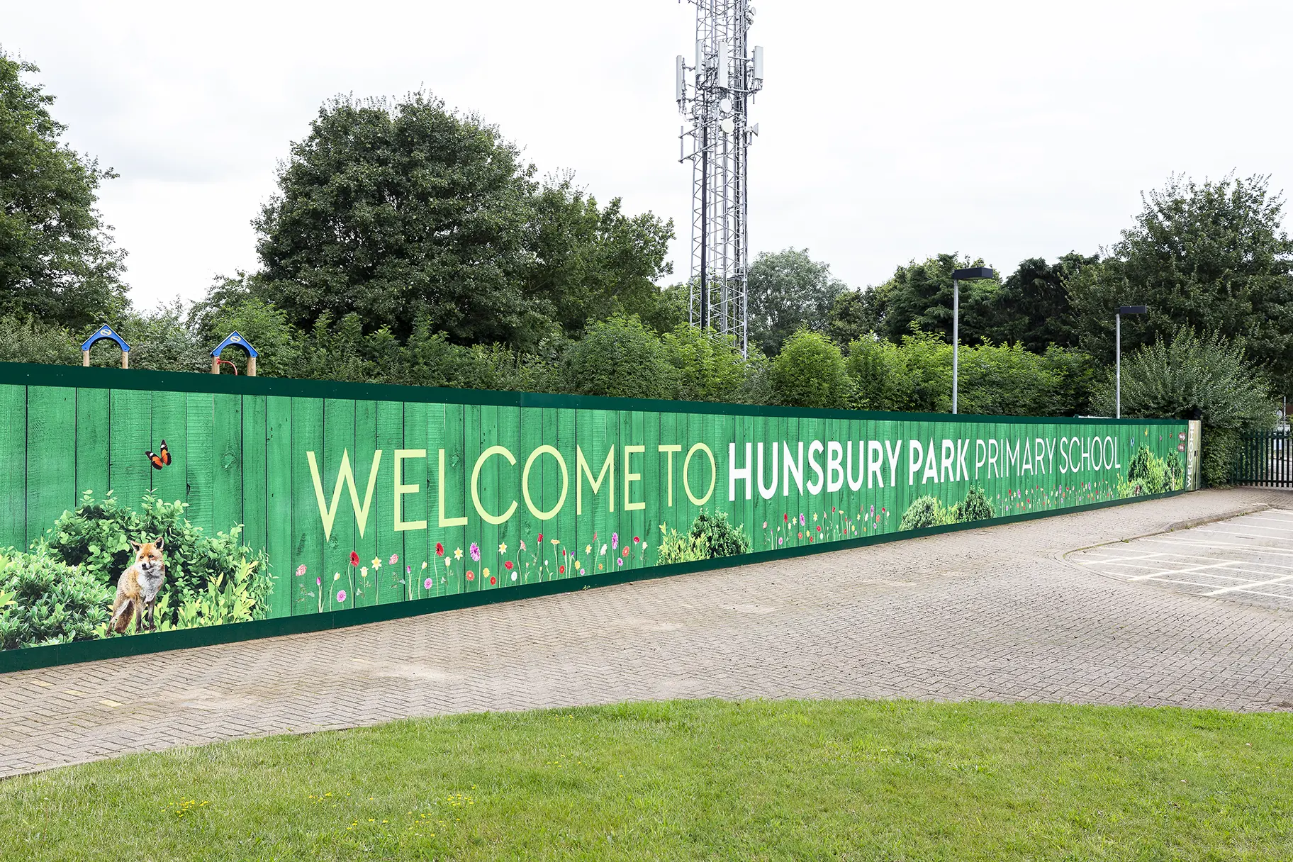 In addition to the traditional welcome signage, some schools also use their walls, fences and gates to welcome visitors. Wall Art can transform a large, unsightly external fence into a welcoming signpost, as per this example below, for Hunsbury Park Primary School.