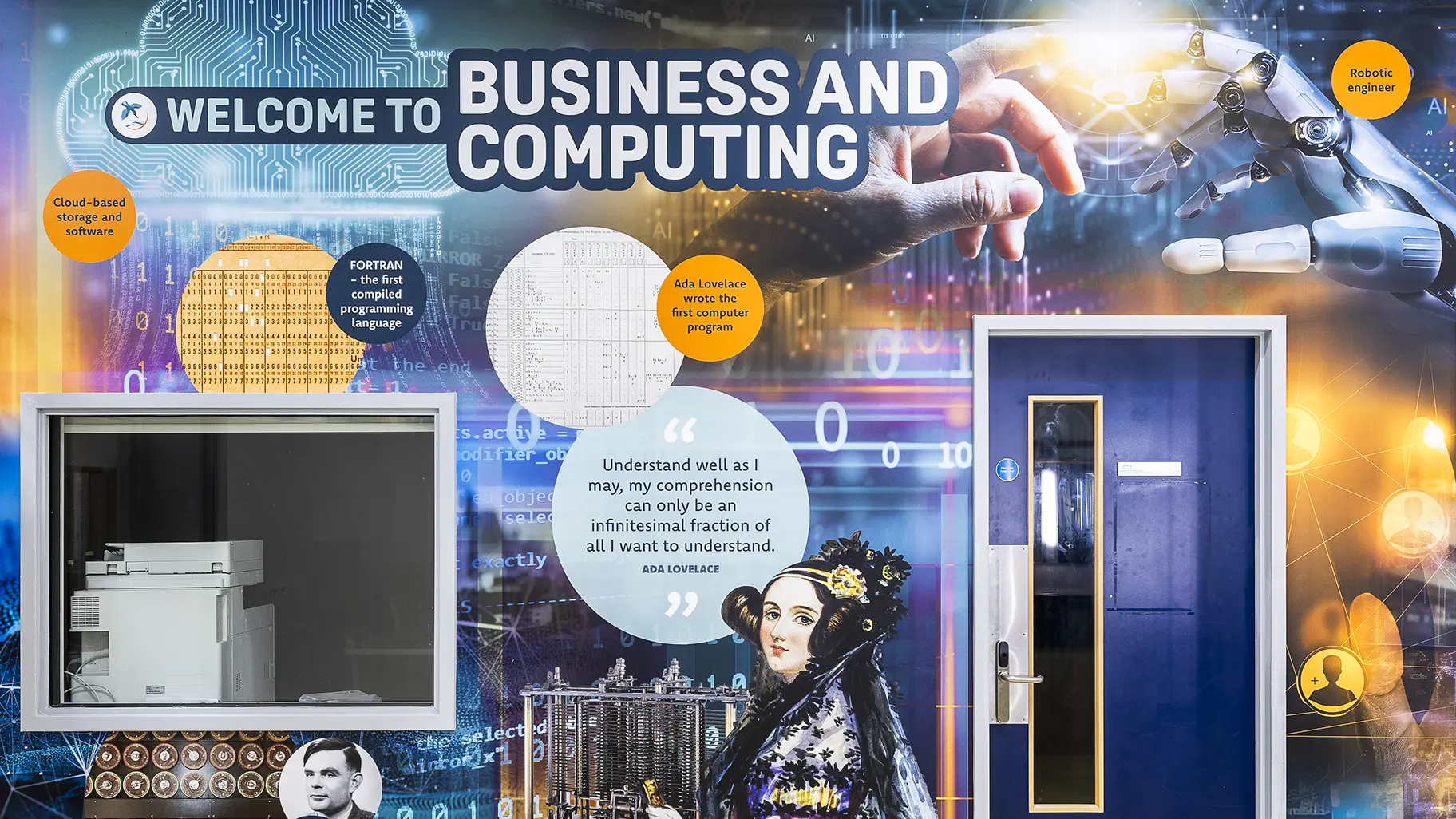 You can also signpost particular subject departments or year groups within your school. Use relevant images, famous faces, facts, dates and information alongside the subject name.