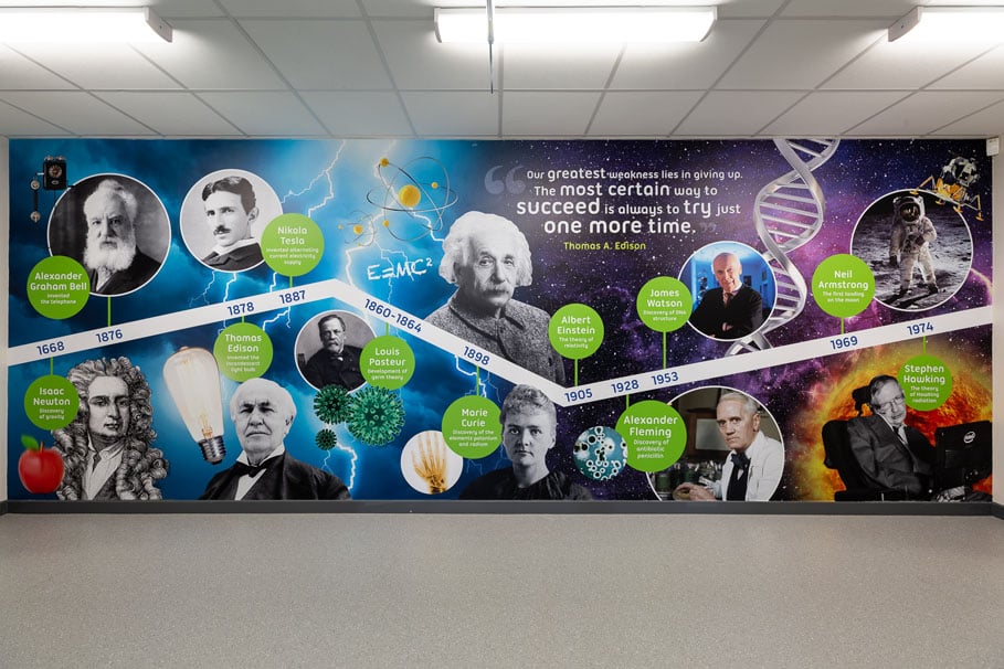 A lot of schools have used the lockdown period to work on school improvement and maintenance projects. Many of those who commissioned timeline themed Wall Art have asked us to include the Covid-19 pandemic within their designs. And for good reason too – what we learn from this experience will influence the rest of our lives, and those of future generations.